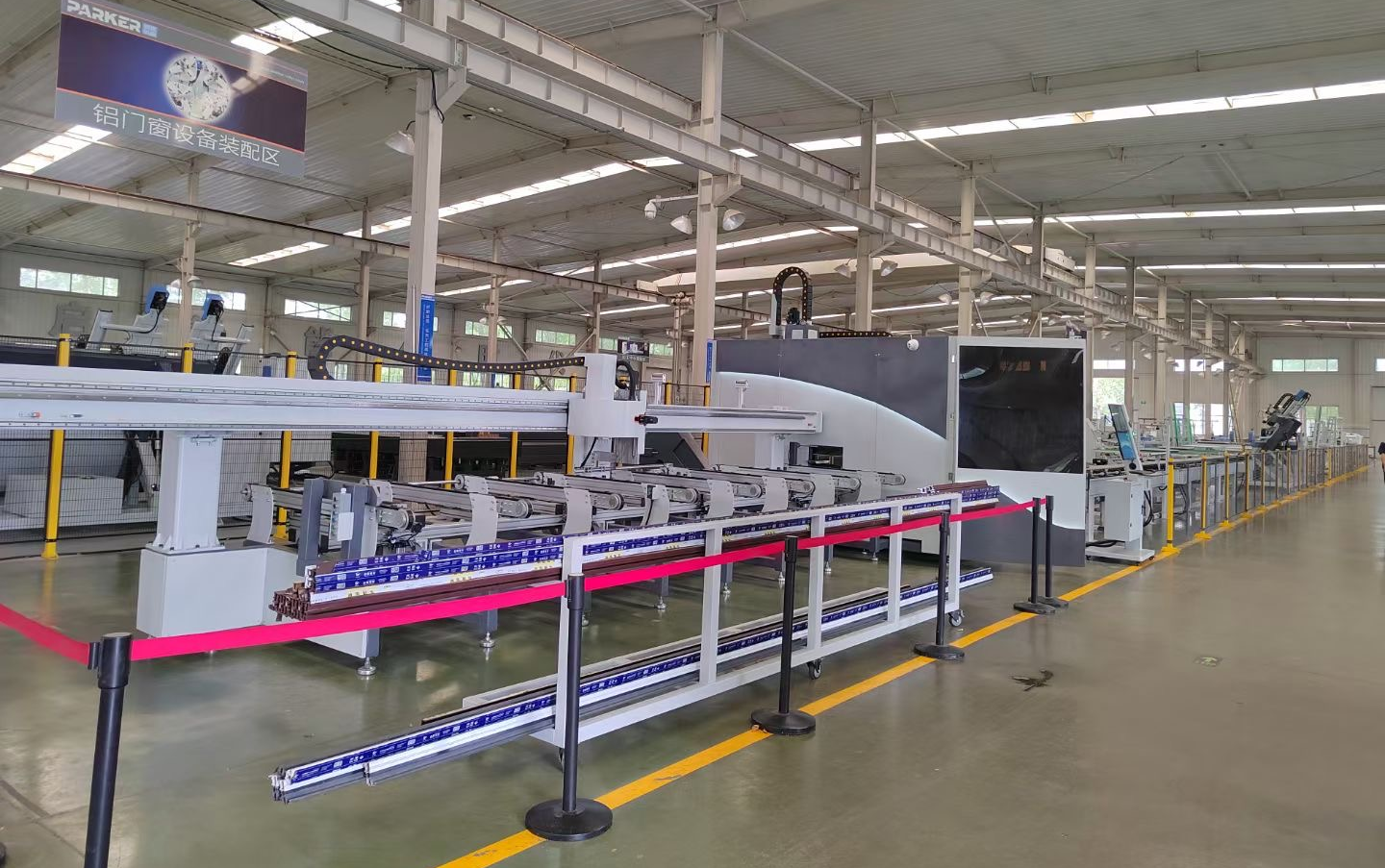首先是數控切割流水線,A9-S 超級切割中心是專門針對門窗幕墻及工業型材,為了實現全自動送料、自動鋸切、自動出料的工作模式來設計和制造。可以配合機械手,流水線加工,省時省力。